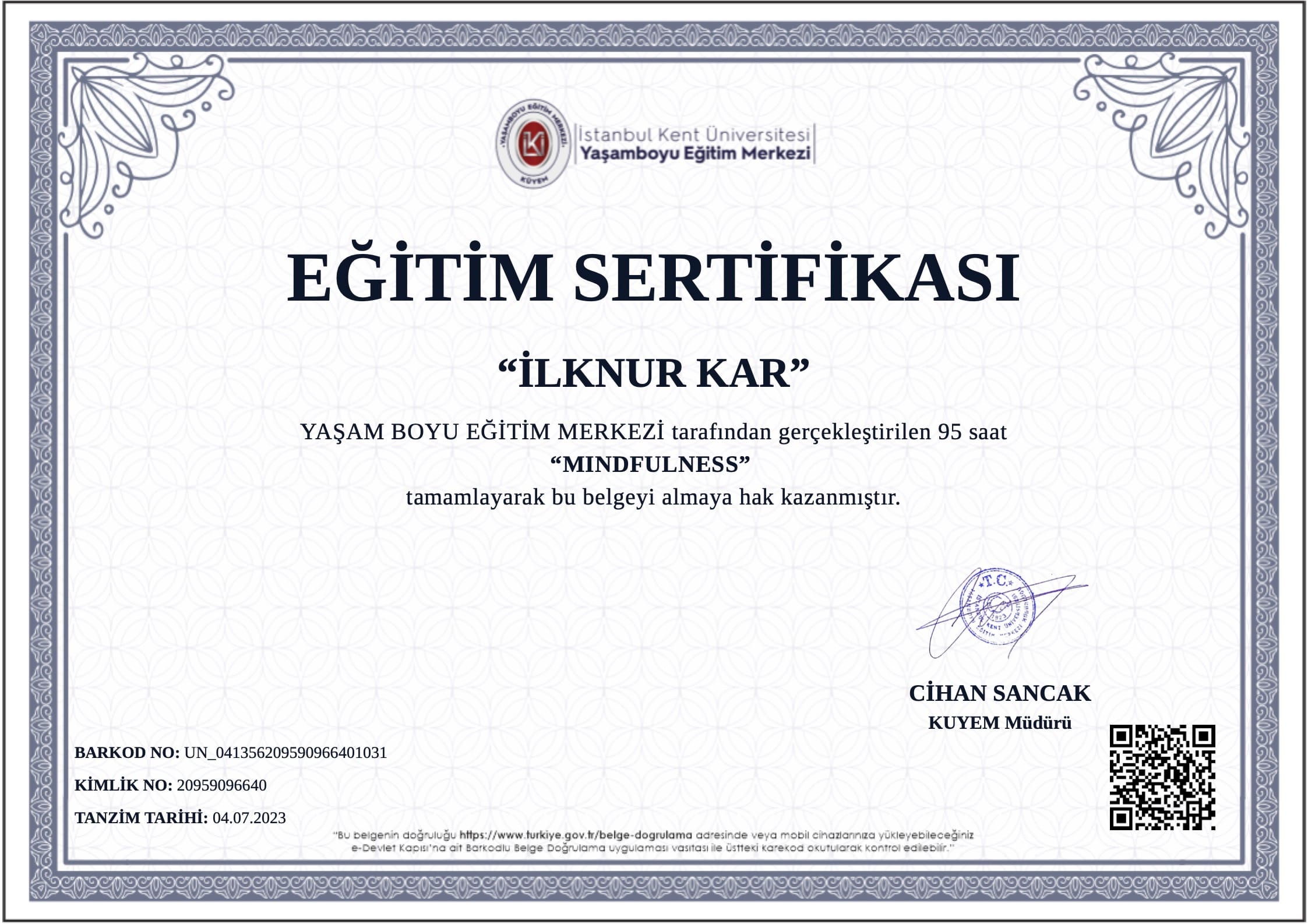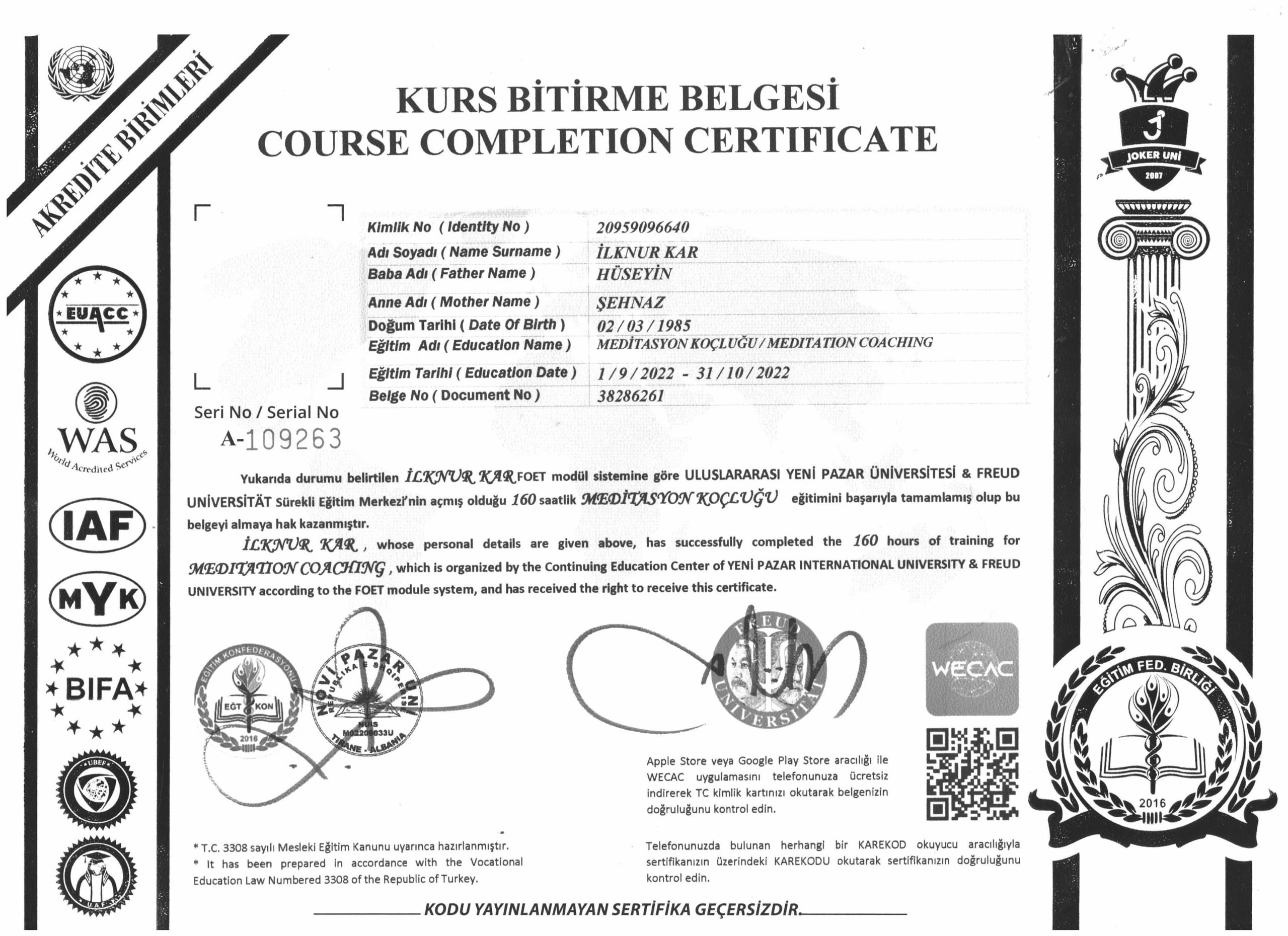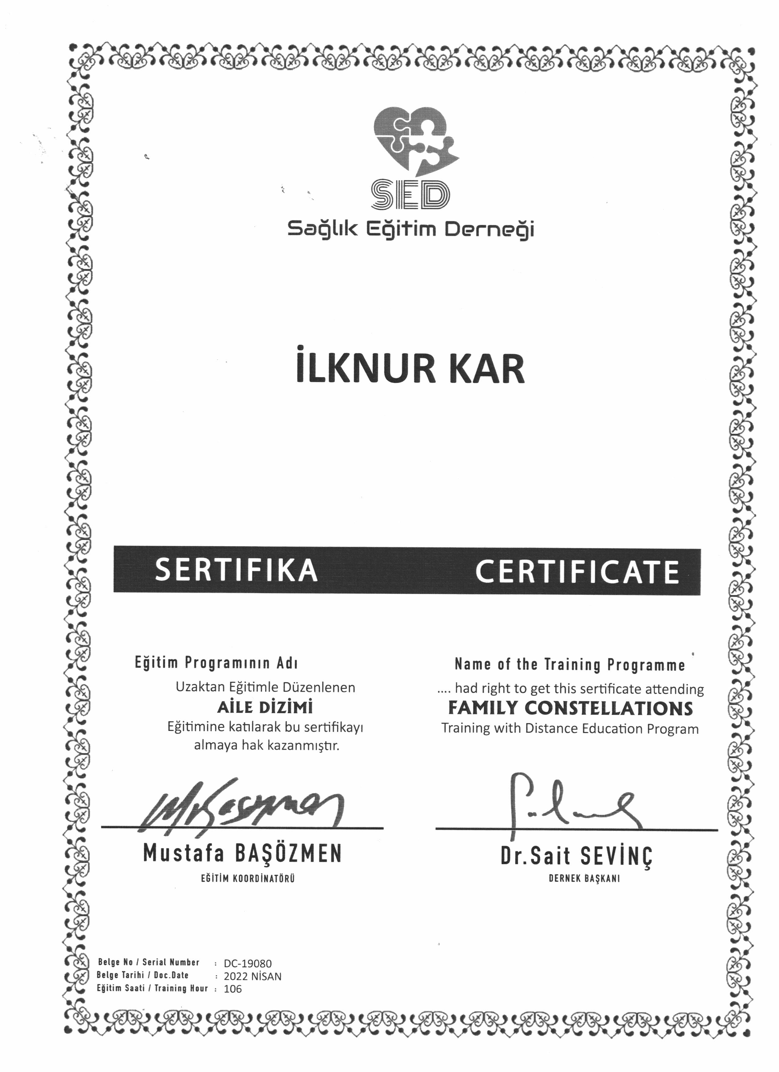 Ulusal ve uluslararası alanda katıldığım eğitimler ve sahip olduğum sertifikalarla, bireylerin ve ailelerin ihtiyaçlarına yönelik profesyonel ve güvenilir bir destek sunuyorum.